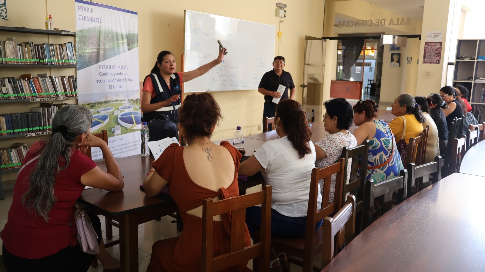 El taller, que se realizó en la Biblioteca Municipal de Chimbote y la Casa Refugio de la Mujer de Nuevo Chimbote, contó con la participación de más de 35 beneficiarias de los comedores populares, quienes tuvieron la oportunidad de conocer en detalle los objetivos y beneficios de la Planta de Tratamiento de Aguas Residuales – PTAR II Chimbote.