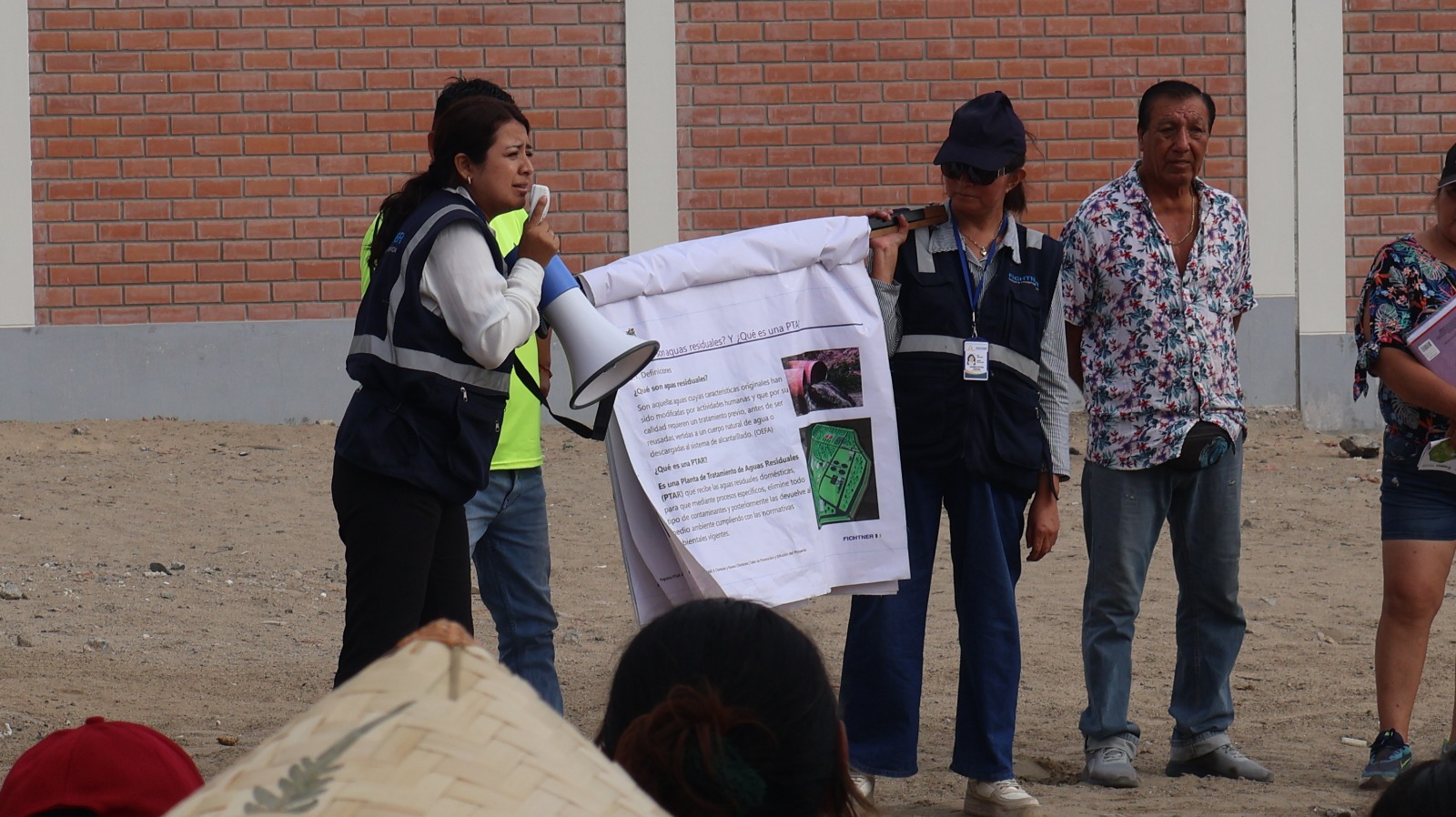 Más de 70 vecinos del asentamiento humano Los Constructores, en el distrito de Nuevo Chimbote, participaron del taller de promoción y difusión del Proyecto de la Planta de Tratamiento de Aguas Residuales – PTAR II Chimbote.