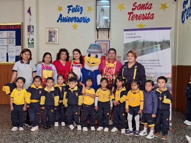 Es en este marco, más de 220 estudiantes participaron en el talleres desarrollados en las I.E. 632 Atahualpa (Nuevo Chimbote), IE Inicial Santa Teresita y la IE Gloriosa 329 (ambas en Chimbote). Los estudiantes conocieron que el proyecto implementará una Planta de Tratamiento de Aguas Residuales (PTAR) y su relevancia para mejorar la calidad de vida de la población, además de su contribución a la recuperación ambiental de la bahía El Ferrol.
